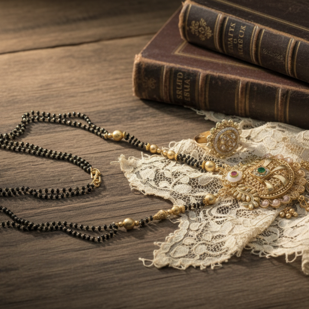 ✨ Material & design details: High-quality gold-plated brass base with a double-strand black bead chain and intricate Kundan-style stone embellishments.